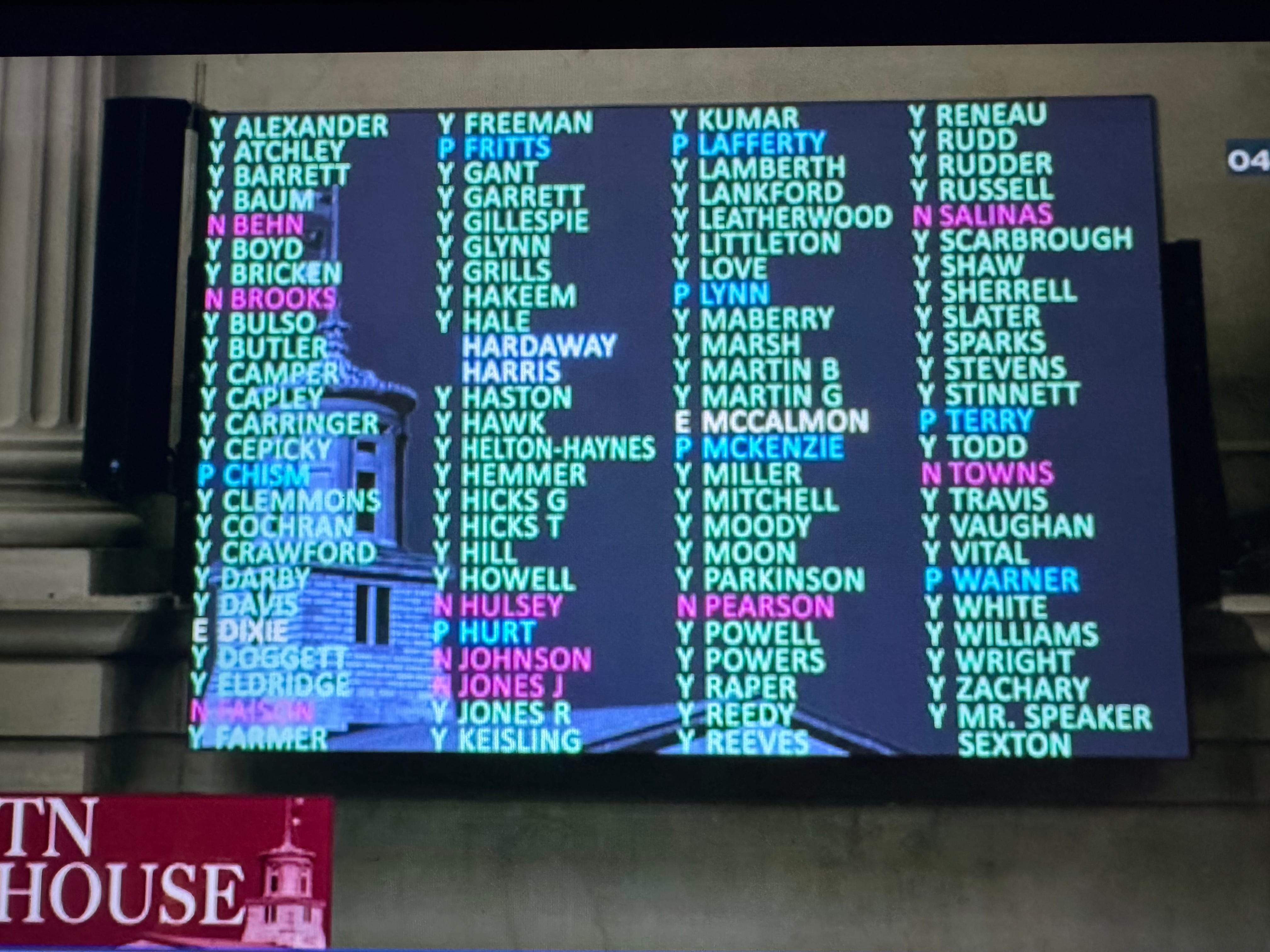 Macy pictre – Fritts no- Lafferty, Reneau present not voting, Clemmons yes, McKenzie yes