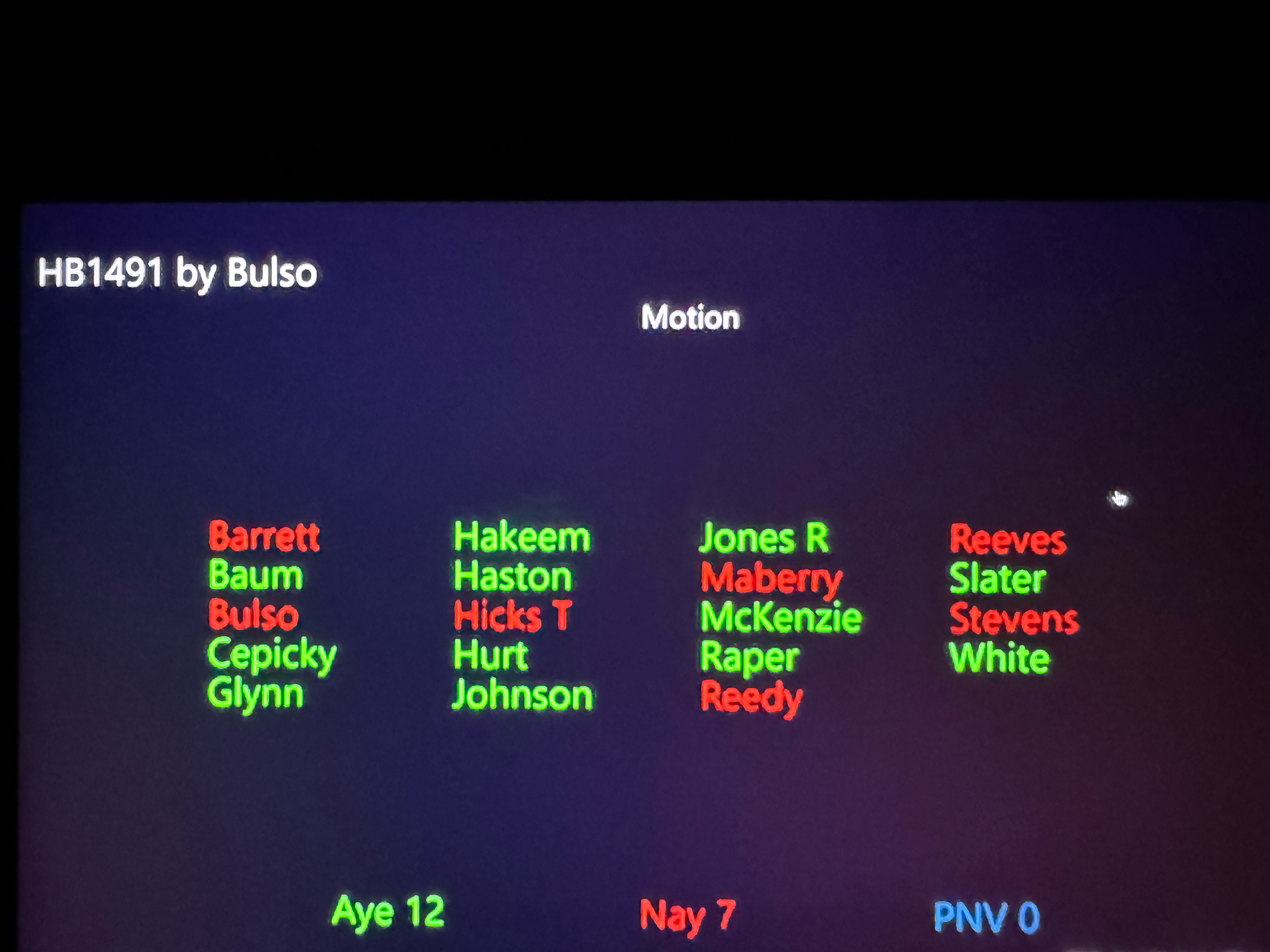 Cepicky immediately called the question to shut off any discussion. This vote was 12-5. The final vote on the bill was 12-3-3, so the bill passed.